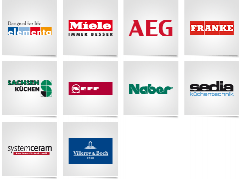 Selbstverständlich präsentieren wir in unserem Geschäft in Güstrow weitere Hersteller; so finden Sie auch Küchen der Marke Sachsenküchen, Elektrogeräte von Miele, AEG und Neff, Spülen von Franke, Blanco, Villeroy & Boch sowie Systemceram, Zubehör von Sedia und Naber sowie flüsterleise Hauben von Novy.